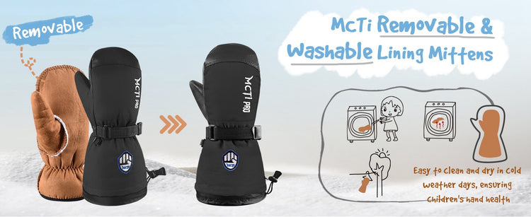 These snow mittens are designed to solve this problem. Easy to remove and install way could effectively save your time in washing and cleaning. The sherpa fleece lining keep the little explorers' hands staying warm in cold weather conditions. It is great for kids to play outside with snow and enjoy the snow games!